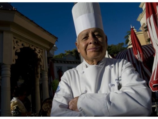 Oscar Martinez, 76, has worked at Disneyland for 55 years. He's been a chef at the Carnation Café restaurant on Main Street U.S.A. for most of that time. In recent years though, he has promoted out of the kitchen and is now the official Carnation Café Ambassador -- glad-handing guests, posing for pictures and telling jokes to children. Oscar celebrates his 55th year at the Anaheim theme park on December 29. He has become something of an icon among Disneyland regulars and is as much a draw to the restaurant as the food according to members of the wait staff. Photo by Joshua Sudock.