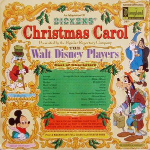 From the Disneyland Records Vault: Well before 1983s, "Mickey's Christmas Carol" in 1974 Disneyland Records released "Dickens' Christmas Carol". Alan Young, still kicking today at the tender age of 95 and performing as recently as 2012 on radio's "Adventures in Odessey," has his first but far from last turn as the irascible penny-pincher Scrooge McDuck. He, along with Alan Dinehart conceived and wrote the script. Clarence "Ducky" Nash plays Donald as Scrooge's nephew, Fred. As Wayne Alwine had yet to inherit the role of Mickey Mouse, which he performed in the film, on this record the role is portrayed by soundman, Jimmy MacDonald, who took over the role from Walt back in the 40s.